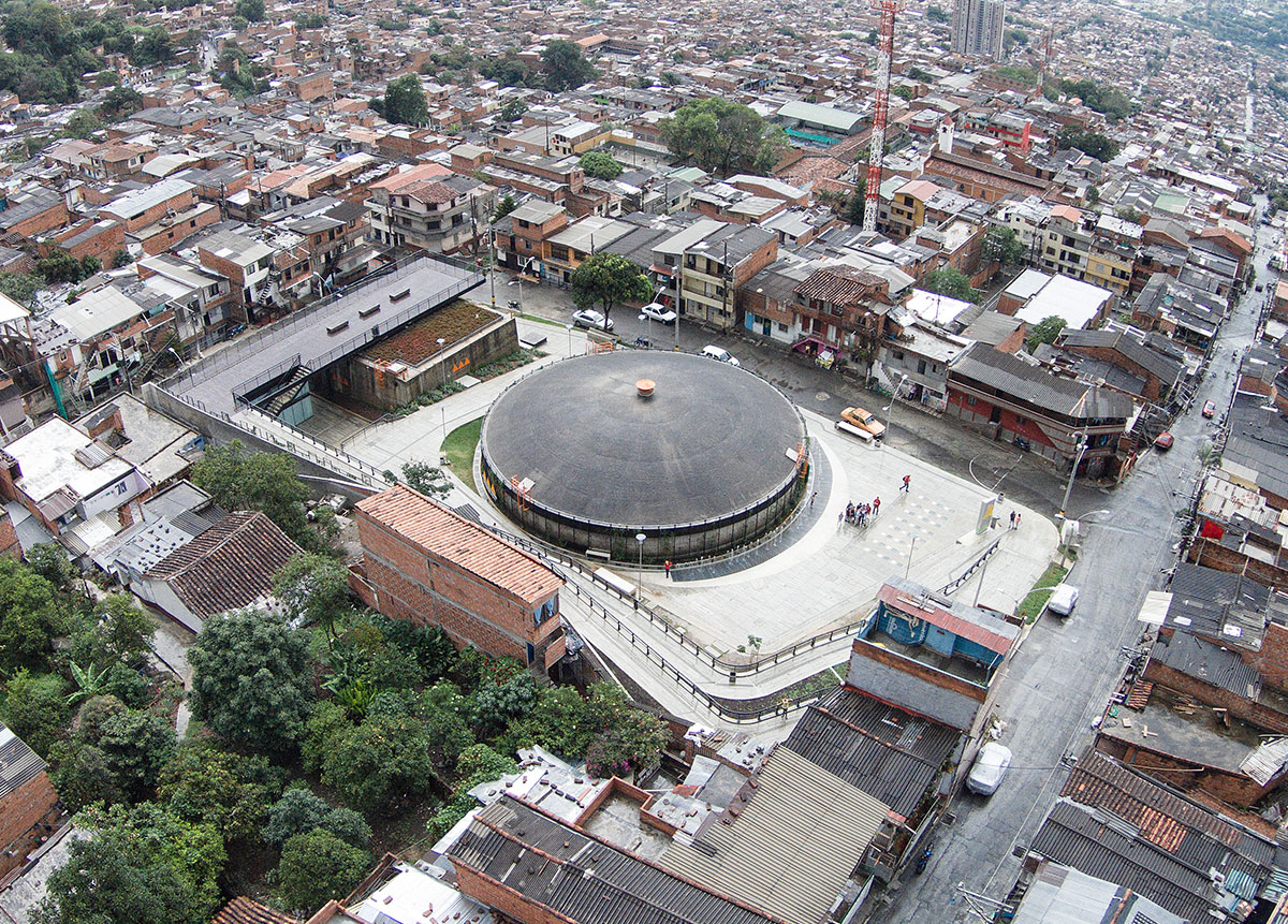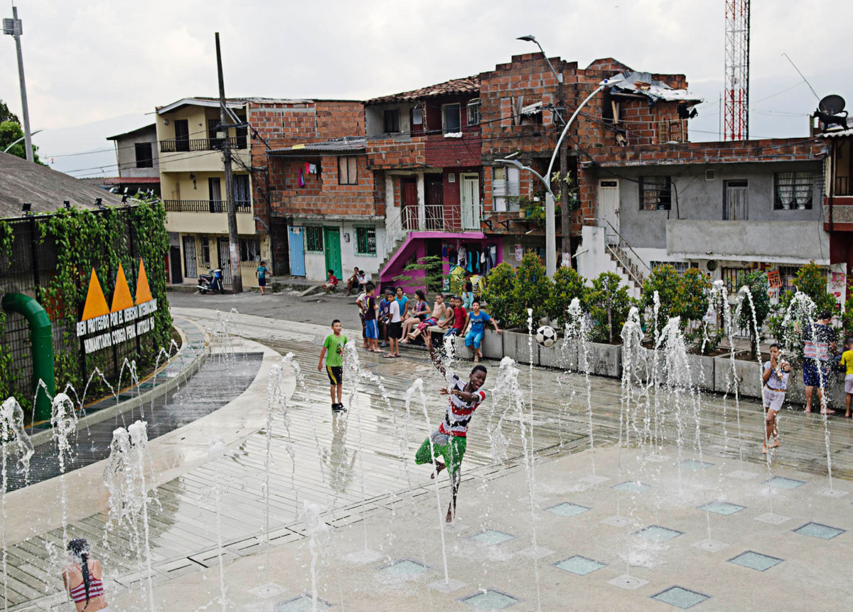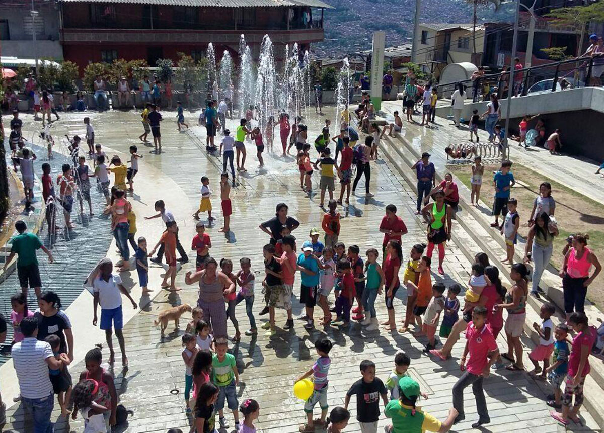 Obra pública para la comuna de Santo Domingo en Medellín, impactando a la comunidad positivamente con espacios que invitan al bienestar.